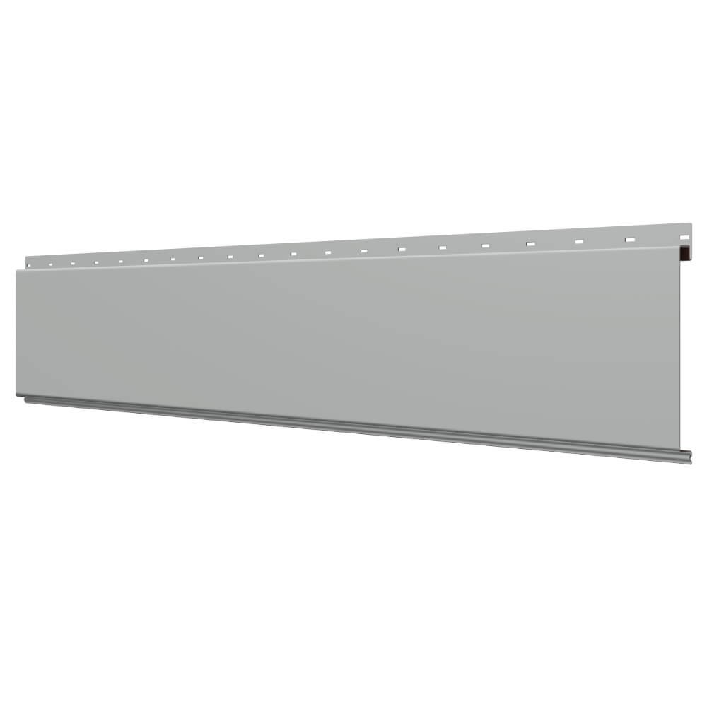 Линеарная потолочно-стеновая панель ГЛАДКАЯ цвет RAL9006 Серебро применяется в качестве софитов для подшивы крыши, наружной и внутренней отделки потолков, стен, фронтонов фасада дома в Якутске.