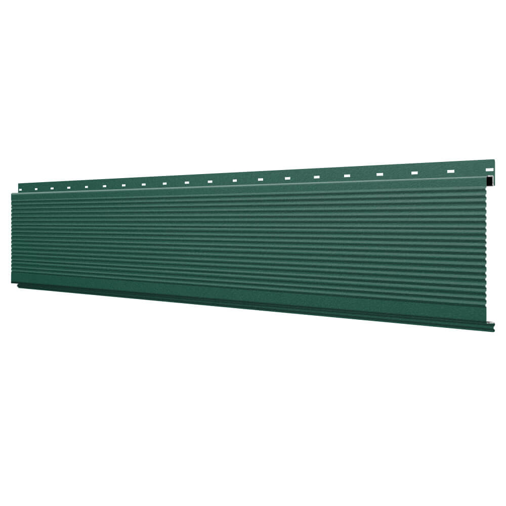 Линеарная потолочно-стеновая панель РИФЛЕНАЯ усиленная цвет RAL6005 Зеленый Мох Стальной Бархат применяется в качестве софитов для подшивы крыши, наружной и внутренней отделки потолков, стен, фронтонов фасада дома в Якутске.