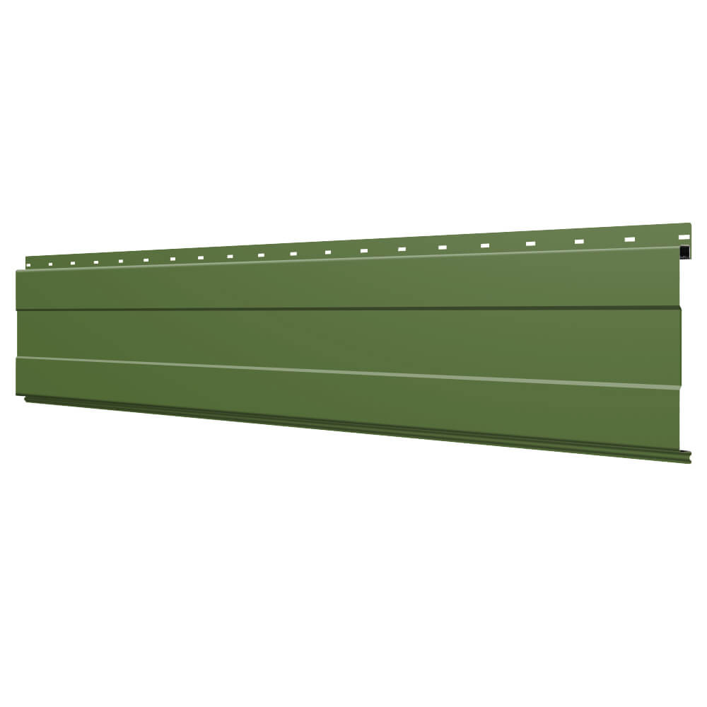 Линеарная потолочно-стеновая панель с ПОЛОСОЙ усиленная цвет RAL6002 Зеленый Лист применяется в качестве софитов для подшивы крыши, наружной и внутренней отделки потолков, стен, фронтонов фасада дома в Якутске.