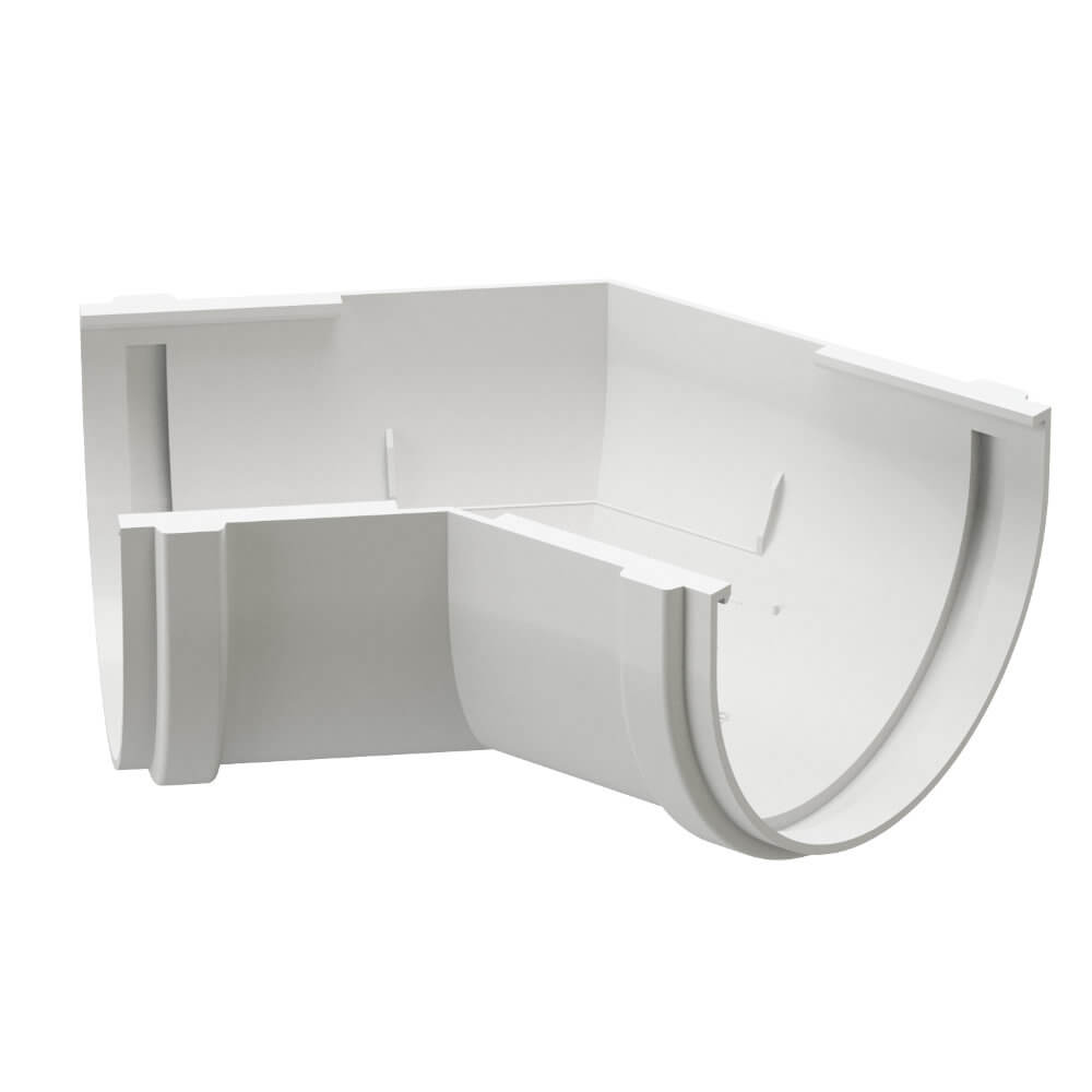 | Угловой элемент 135 градусов | RAL 9003 Белый Пломбир | Устанавливается на внешних и внутренних углах кровли и предназначен для соединения желобов под углом 135° в целях изменения направления движения воды. | 0,18 | 9 |