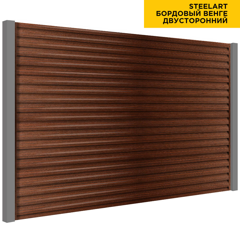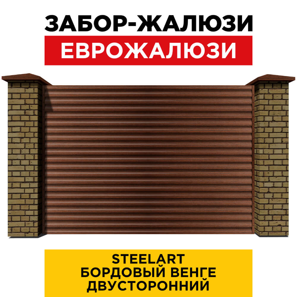 Ламель Еврожалюзи металлическая S-образная, цвет под дерево Бордовый Венге SteelArt Россия двухстороннее покрытие, длина любая кратно 1см под заказ - для забора-жалюзи, беседки, перголы в Якутске