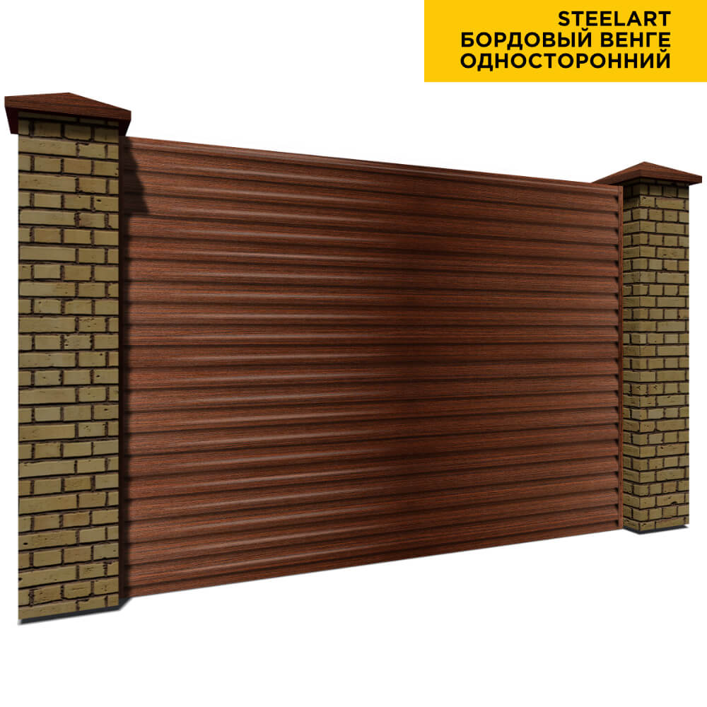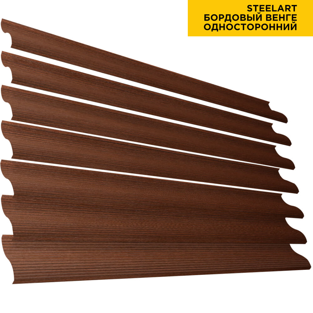 Ламель Еврожалюзи металлическая S-образная, цвет под дерево Бордовый Венге SteelArt Россия одностороннее покрытие, длина любая кратно 1см под заказ - для забора-жалюзи, беседки, перголы в Якутске