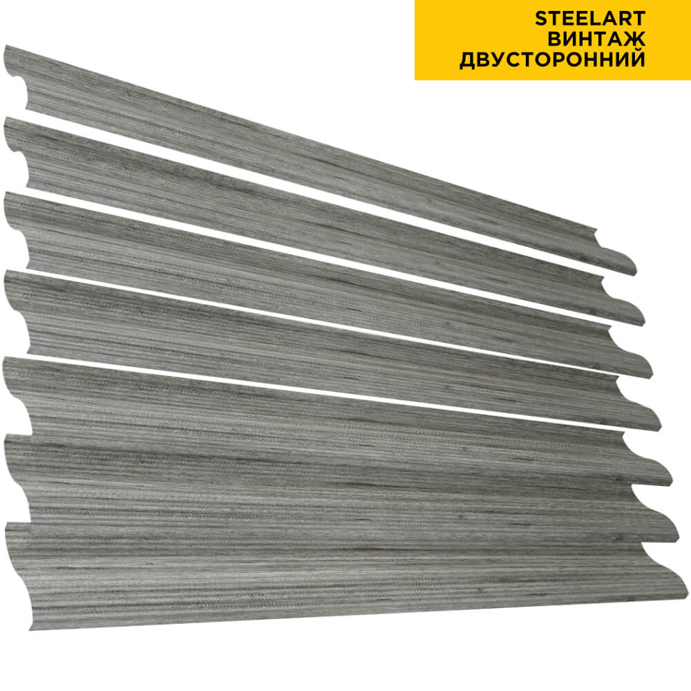 Ламель Еврожалюзи металлическая S-образная, цвет под дерево Винтаж SteelArt Россия двухстороннее покрытие, длина любая кратно 1см под заказ - для забора-жалюзи, беседки, перголы в Якутске.